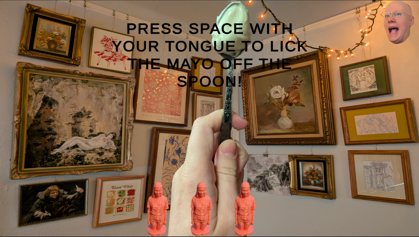 DigiTwist - Digital Twister. Complete these rapid chaotic minigames using odd parts of your body to press buttons and manipulate the mouse. Made for the Weird Game Jam III But its Winter. https://itch.io/jam/wierd-game-jam-iii-except-its-winter. Contains an image of my belly button so don't play if you don't like that. Audio highly encouraged.